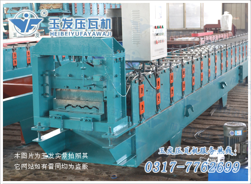 壓型部分是液壓缸帶動模具上下移動,可以把彩鋼壓成許多節,形似琉璃瓦