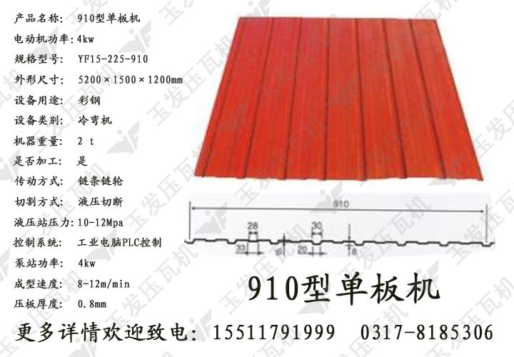 玉發910單板壓瓦機設備-910單板壓瓦機設備