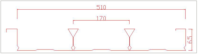 510閉口式樓承板壓瓦機全稱YF65-170-510閉口式樓承板成型設備,是根據用戶需求并結合市場實際情況開發的樓承板成型機品種,壓型板有效寬度為:510mm,成型板間距:170mm,深度:65mm,主要用于生產鋼結構廠房或別墅樓面。